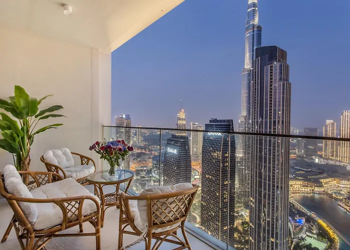 The spacious 165 m^2 65Th High Floor - 4 Bedroom Apartment With Best Opera, Fountain & Burj Khalifa View - Downtown Dubai - Forte Tower 1 By Stayfinity For Max 9 Guests is situated right in the centre of Dubai, within easy reach of Sofitel downtown. Located merely 0.7 km from the meter Burj Khalifa Skyscraper, the 3-bedroom apartment also includes a private swimming pool, a play area and a garden.